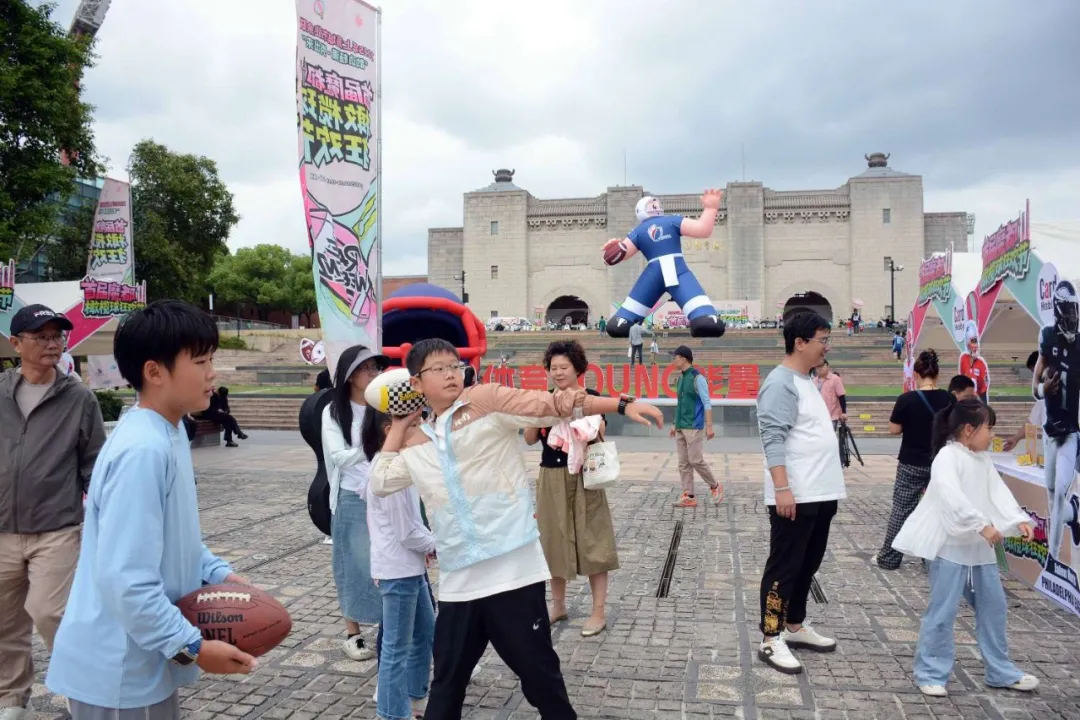 创智天地下沉广场及周边区域变身成为巨大的“橄榄球主题市集”。幸运扭蛋机、集章任务卡、高颜值打卡点以及亲子橄榄球体验区,让各个年龄段的市民都能找到乐趣。市集汇聚了运动装备、球星卡收藏、潮流服饰与健康餐饮。球手便利店提供专业装备,品牌酸奶成为运动补给热门选择,多辆高颜值餐车供应各类人气美食。